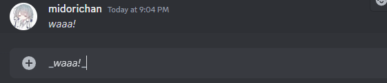送信するテキストをアスタリスク1つ (*)かアンダーバー1つ (_)で囲むと、囲んだ部分が斜体になります。