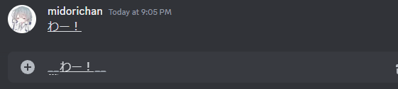送信するテキストをアンダーバー2つ (__) で囲むと、囲んだ部分に下線が入ります。